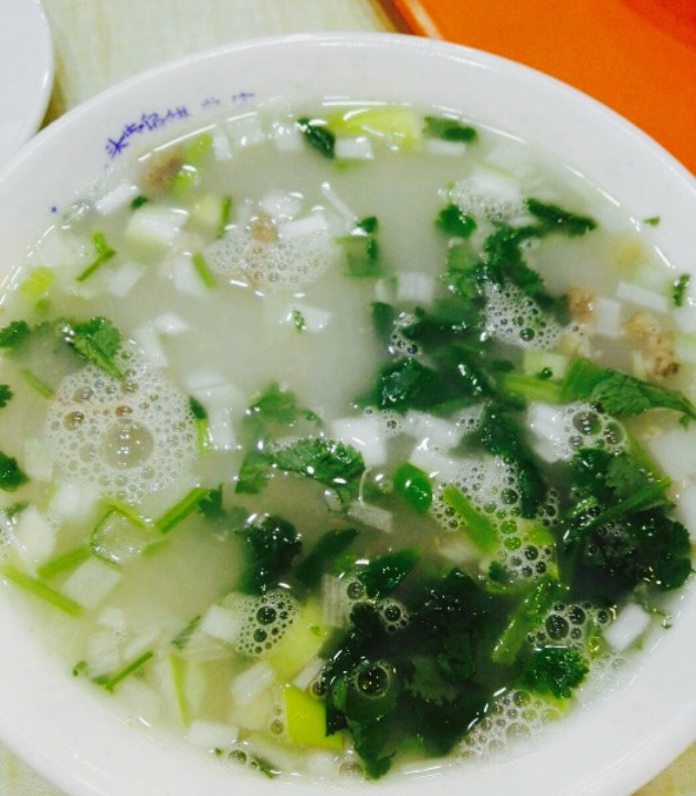 肉的4元,素的3元,味道都不错,就是油大点,汤也是3元,很清淡,味道很好,里边的羊杂也很多,好评
