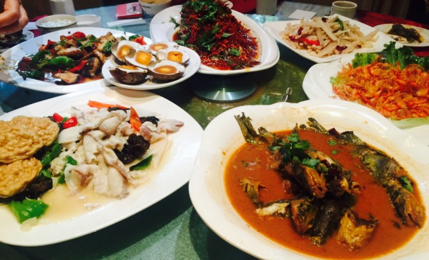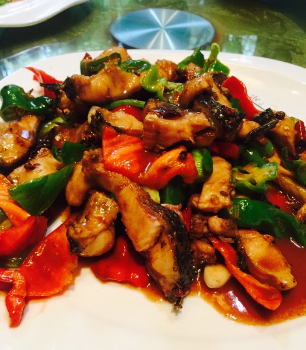 这是个老店了,就餐的人非常的多,地址在琵琶山路上,二院对面,招牌是一个大大的鱼字就对了。店里的风味就是鱼,本人非常喜欢吃鱼,所以来到必点。店里有个鱼球特别有意思,上去的时候是圆圆大大的,可是十几秒的时间,就缩小了,鱼球油炸的,所以有点油腻,只是味道很好,很劲道,应该是用鱼肉和蛋清做的。鸡是现杀的,小鸡挺可怜的,咯咯咯的就上称称重量了,上去的炖鸡很大份,的确是新鲜鸡肉,口感不一样。辣炒河蚌也很棒,包着小饼,很入味,我本人比较能吃青椒,因此也没感觉很辣,但是同去的朋友却被辣哭了。蜜汁山药看起来不怎么样,不过吃起来还不错,山药软糯,不粘牙,蜜汁不是非常的甜,因此也没有掩盖住山药本身的味道。之所以点了风味茄条,是因为女生多,酸甜口味,外焦里嫩,很美味。店里的特色很多,老店,许多都是经典。