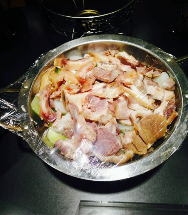 公司晚上在这边聚餐,十五个人,点了很多菜。被安排到一个超大的包厢。总体菜品感觉比较舒适,整洁。外面有明档的特色土菜,厨师现场烹饪的。 。 。#黑椒牛仔粒#牛仔粒好嫩,充满的椒盐的喷香,杏鲍菇看似干瘪瘪的,要下去有爆汁的样子。 。 。#香炸咸蹄#看上去蛮普通的,但咬下去有种惊艳的样子。蹄髈的皮因为已经炸过了,所以油腻的皮都被炸得很脆。里边的蹄髈肉应该已经被腌制过了,咸香四溢。 。 。#象拔蚌刺身#摆盘没有日料店那么精致洋气,但味道比日料店的好,不沾酱油芥末也没有腥味。听主厨说象拔蚌的口感就是有没有腥味,之所以原料特别新鲜,是因为是每天进的新鲜货。