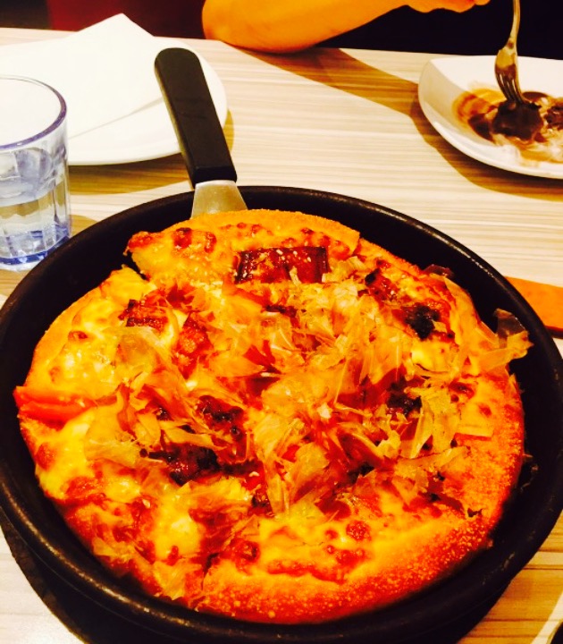 今日终于有空,又一个人跑到必胜客了,果真能吃,一个人点了一个二人套餐,服务员介绍新品套餐里的比萨是四种口味,我果断点了套餐,结果竟然吃完了。没错。吃完了,尤其是那个巧克力蛋糕实在超级美味,饮品我还是喜欢花果茶,酸酸甜甜的,新出的冰奶茶也不错,听说他们下周又要上新品了,我是不是又要来呢。??。