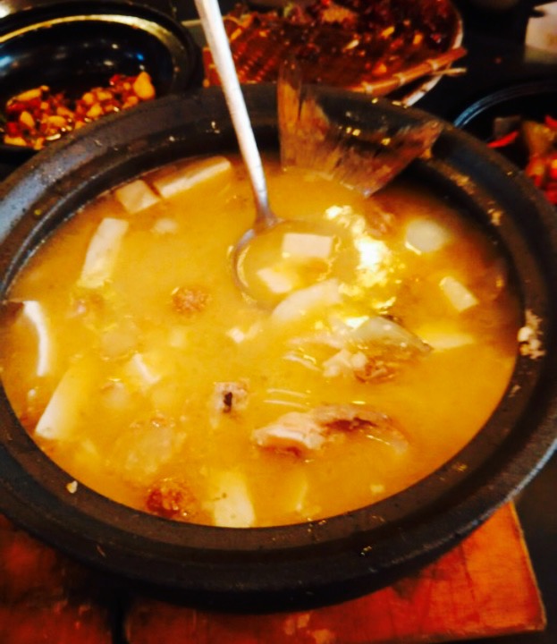 头次来到雅安,就在酒店附近找到了一家本地的饮食店,这家店在角落里,可是人气很旺,特色菜有红烧锅巴肉,凉拌鸡,霍香鱼,以及强烈推荐的干锅巴骨肉,很大一盘,大口吃肉的样子真爽,总体来说特别实惠的一家点。