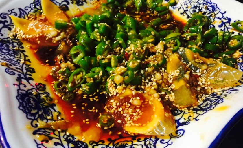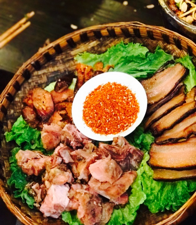 到雅安玩,肯定要去吃雅鱼。住在雅安的朋友推荐了地主老财土菜馆,说这家店做雅鱼地道,川菜味道也好,价位比较的实惠。我们就去拔草了。店就在青衣江边,紧挨廊桥,宜必思酒店的对面,有了这几个地标,就特别好找了。商家不大,不过看上去生意很好,正是中午饭点,居然全部坐满,还有在店外排队的。幸亏我们先预定了位子,要不肯定要等好一阵了。点了砂锅雅鱼,招牌血皮菜,金沙玉米,排骨,石锅肥肠,牛柳,还有啥子巴骨肉哇。血皮菜是凉拌的,叶子脆生生的很入味,味道也好。肥肠是砂锅石头肥肠,里面有好多圆圆的石头,挺有意思的。肥肠软糯适口,一点也不腻。锅里还有豇豆木耳等配菜,都挺好吃。金沙玉米是小孩子们的最爱。牛柳好嫩好入味,配菜有洋葱和青红椒片,配上肉吃,太过瘾了。砂锅雅鱼真的巴适,好大一砂锅。本地人说了, 。雅鱼的肉还是美味,但最美味的当属鱼汤(主要因为鱼肉刺多)。鱼汤里配有笋子,木耳,香菇,豆腐等等,把鱼的清香都激发了出去,鲜而不腥,味浓而不腻,实在太好喝了,我们每人都喝了两大碗。所以去雅安,真的必须要吃砂锅雅鱼。
