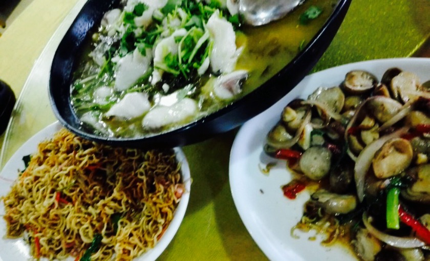 两个人点了三个菜,吃得好饱。鲜菇牛肉味道还可以,就是牛肉不多。三丝炒面味道一般,比较清淡,三丝好像只有一点红萝卜丝,火腿丝和大蒜。酸菜鱼分量很足,下面有好多白菜酸菜,最后没吃完。环境一般般,不过价钱还是很实惠的,最后结账100元。今后还会来尝试别的。