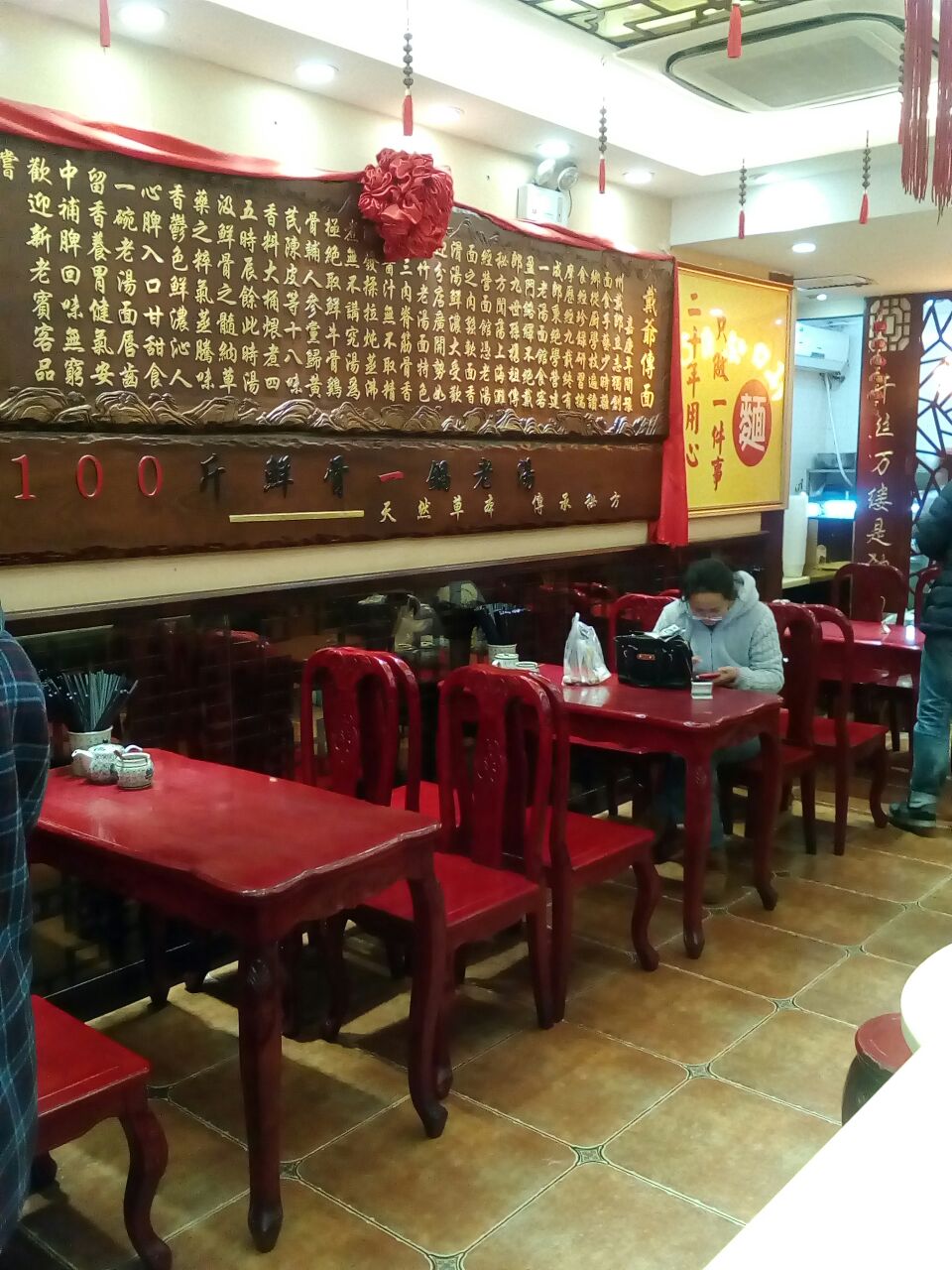 网友2018-01-08非常知名的一家中式餐饮连锁餐厅,门店装饰古朴自然,内部整洁宽敞,这里主打传统面点,面条现场拉制...非常知名的一家中式餐饮连锁餐厅,门店装饰古朴自然,内部整洁宽敞,这里主打传统面点,面条现场拉制,汤底宽厚(有二百多年传承,加入多位草药调制而成),浇头、配菜种类丰富。