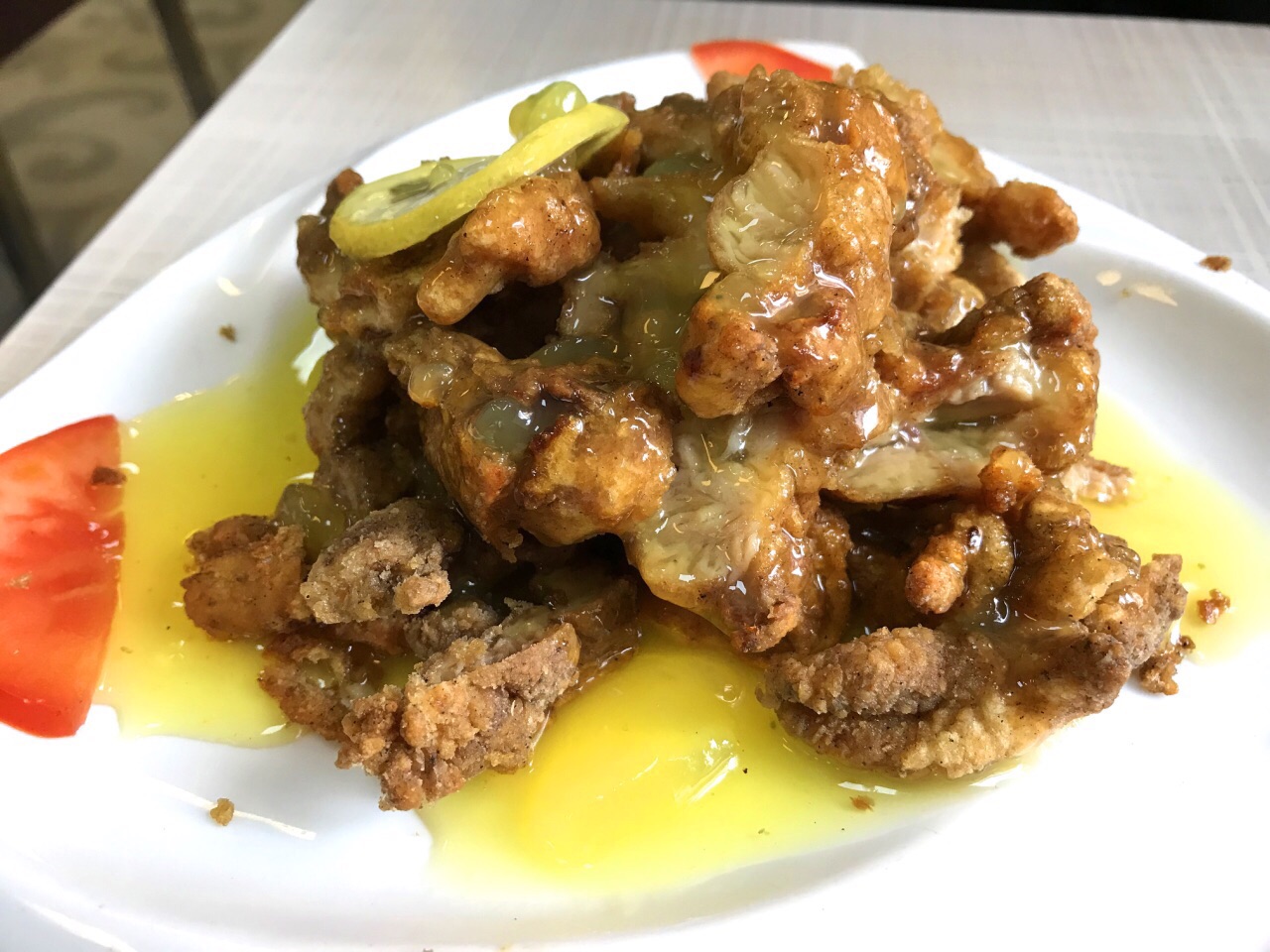 这次选这家一是名气好,二是从来没有尝过,好奇宝宝来尝尝。这样的小店能吃到正宗的澳门菜也是不错的,中午时间人不多。 星洲炒米粉-21:色泽比较好看,米粉略硬但不显干,盘底无油,配菜清爽,总体炒的还是不错的。 澳门秘制叉烧-38:因为对猪肉比较敏感,所以味道有一点不好我都能吃出来,这个叉烧卤的不错,但选材真的很不好,色泽偏暗,混浊的味道很重,我个人不是很喜欢。 西柠煎软鸭-36:做法很不错,酥嫩的鸭肉配上调制的柠檬酱汁,略微带些酸味,很解油腻。缺点是鸭肉没处理干净有轻微骚味,柠檬酱汁调制时不知道添加了什么,有一点很奇怪的味道,不够清爽。 五香牛腩通心粉-19:这道面食不知道为什么总觉得哪里不对,总之牛腩是牛腩,通心粉是通心粉,两者完全不融合,而且口感很奇怪,混在一起吃很是不对味,呵呵,有些让人迷茫的感觉。 总结:店员都很和气,服务也不错,上菜的速度很快,来吃的能看的出都是些老食客,但实在吃不出澳门小食的感觉,也没有让人惊艳的地方,不知道是不是没选对菜,随便吃吃吧。只是希望老板注重食材的品质,新鲜的好食材才能做出最好的味道。