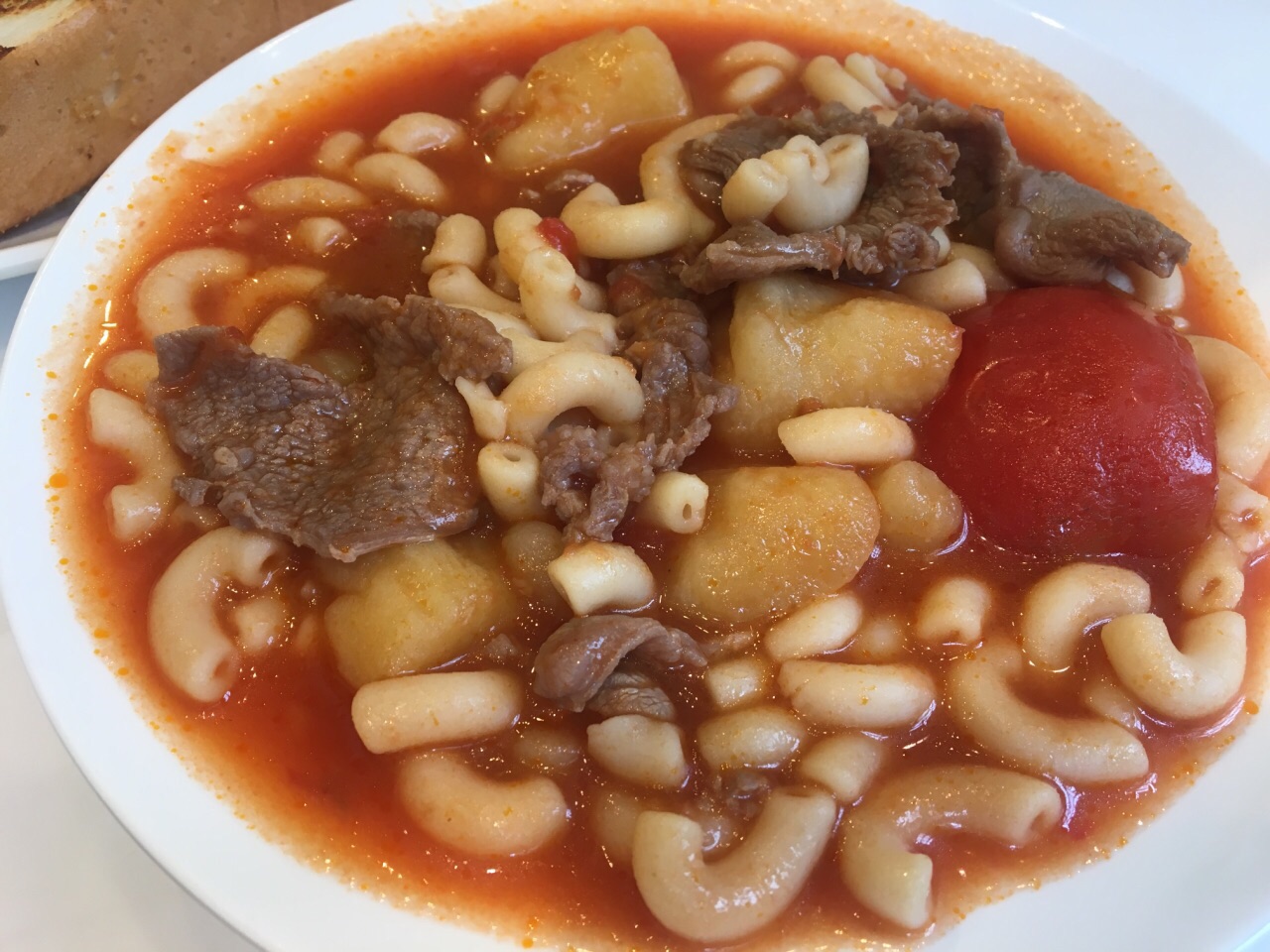 香港很多所谓的冰室其实都是港茶餐厅,但皇后冰室却是走的西方路线,也许是有“皇后”二字吧,菜色基本上都是西餐。芝士肉酱 意粉、香煎黑椒鸡扒、烟熏三文鱼忌廉意面.....点的一碗罗宋汤,除了常见的蕃茄酱汁外,还加了些意大利通粉,还有土豆,算是蛮丰盛的一碗,味道还行