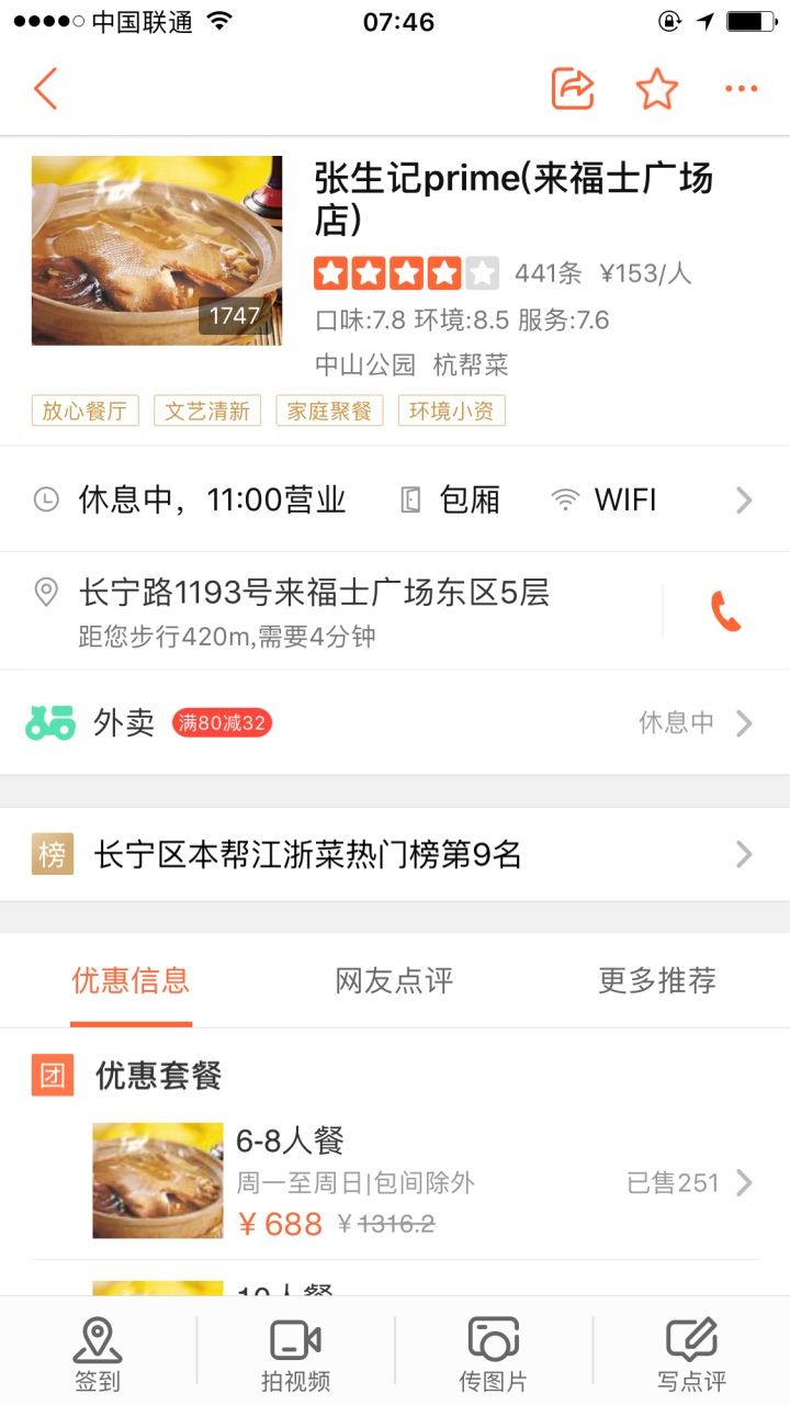 新开半年张生记(来福士广场店)用餐环境优美,没有任何装修气味。菜肴味道很好,特别是老鸭煲的味道非常鲜美,赞、赞!6~8人套餐688元量足品种多,8人吃到撑饱。服务非常好,中间换盆等,我们老同学聚餐坐着聊天,餐厅非常友好地上茶上水,服务质量好极了。