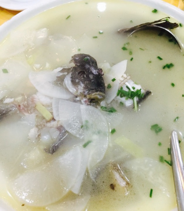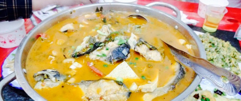 图1土豆片超级美味,像新鲜薯片的样子。点了两份。番茄炒鸡蛋给儿子点的,蛋比西红柿多,应该是蔬菜难上山的缘故吧,还有个茄子忘记照相。然后就是大家都推荐的冷水鱼。点的家常味。有两种味道可以选。打底的是萝卜丝和豆腐。总得来说不错。跟网友攻略相符。