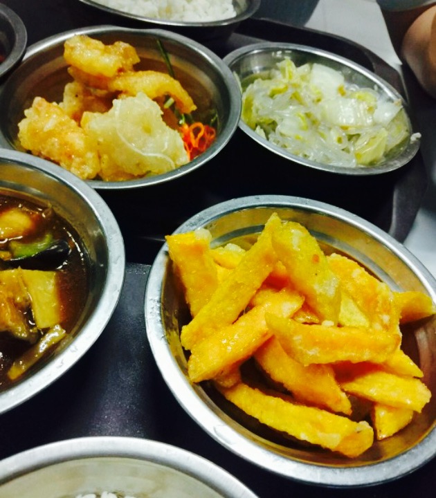 又暴露了嗜辣本性??。约娅娅瑞瑞川川吃麻辣香锅。到了六食堂,发现窗口不卖香锅。他们仨还没吃过金陵小炒诶,发现我居然已经吃过两次了。点了五个菜,才花了100,讲真好实惠啊。这几个菜给我的总体觉得是偏酸??,但不辣。感觉这次的酸菜鱼不够嫩。水煮肉片的口感也一般。锅巴也是酸酸甜甜的。藕饼是新鲜出炉的。我最近可能不太习惯偏甜的食品吧。同门川买的饮品,必须打卡感谢一下????。