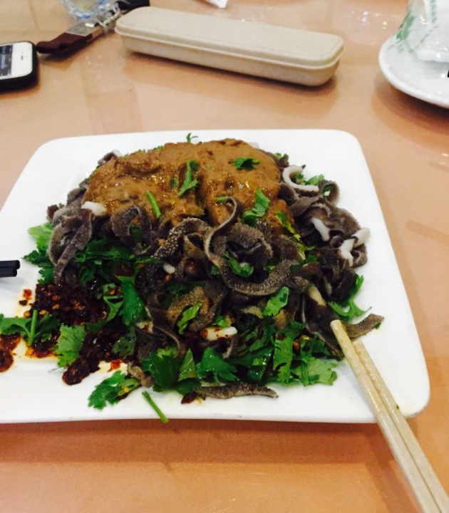 在人民公园旁边一个不宽的马路里边,清真菜馆,招待的人应该是老板娘,觉得是个有风格的大叔。大叔推荐了一个菠菜木耳皮皮虾的菜,觉得还ok。我点了一份饺子,大叔送了一大碗饺子汤。全爆挺好吃,汁是奶白色的。特色牛舌,口感很嫩,就是口味我本人不太吃的惯。整体不错哦,加分。