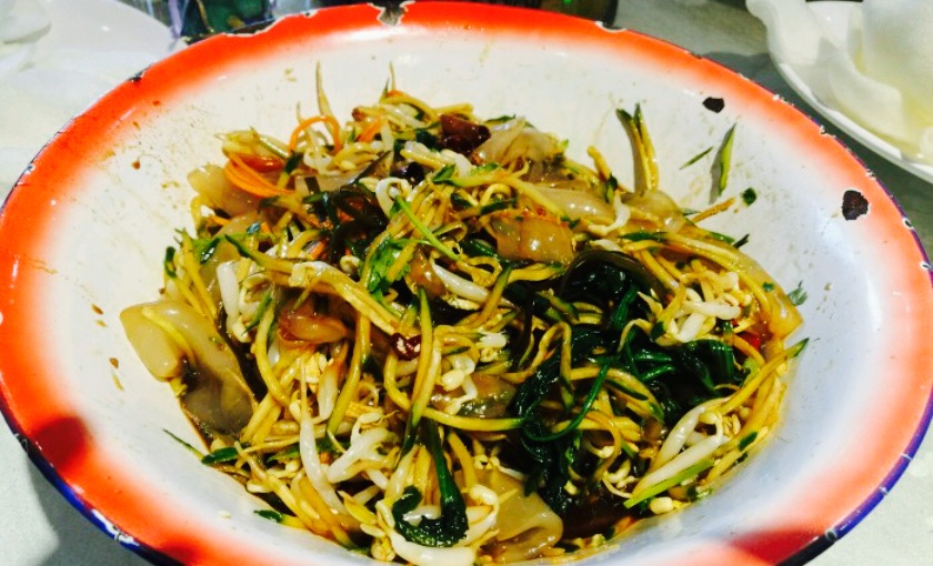 看着还行,菜量挺大,装潢风格没有靠近市区的精细,虽说都是粗旷的样子,菜品没得说,大盆上的东北拉皮,大锅炖的清江鱼,看上去就很东北爷们的样子,好爽的很,唯一不足的就是太热了,空调又点不给力,影响了食欲。