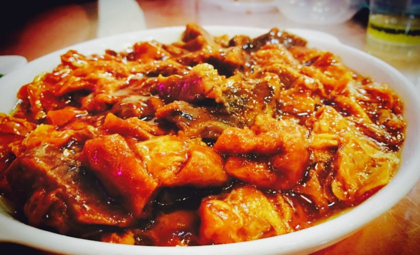 原本是去河西买煎饼果子的 。只是人太多了果断转战他家,环境真的看不出来优势 。就是那种大排档的feel,晚上八点半到的,厅里就餐的人基本还满座,可见还是有其可取之处,看了菜单 。菜品很全,还有烤串,点了几个炒菜#鱼香脆皮豆腐#外焦里嫩,酱汁非常足味道正非常合口味,#老爆三#最近超想吃老爆三 。在他家果断要点,具体无法描述 。不过味道的确很好,#三鲜烧卖#里面虾仁不多有韭菜,可是味道真的很鲜 。有汤汁都不用醋,他家菜量很大,两个人点这些完全没吃了,还点了一个虾仁茄盒 。直接打包带走了,整体来讲 。环境一般 。可是味道不错 。很值得推荐的一家店(^_^)。