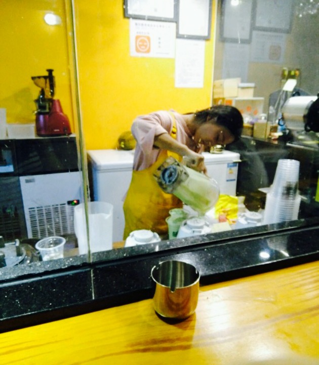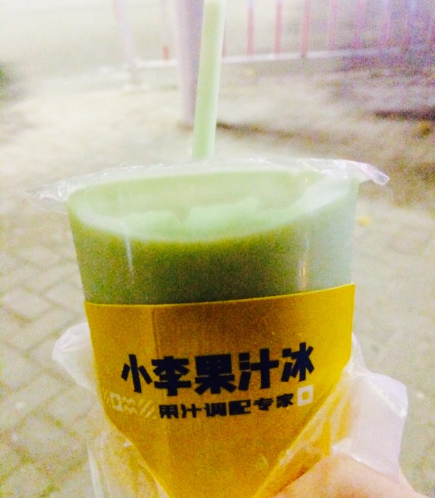 那会去汕头玩的时候,半夜路过店门口发现还很热闹就去尝试了。花了15元点了一份牛油果口味的。本来觉得牛油果味的需要加点牛奶或者酸奶调节油腻度,但老板娘说完全不必,用不着,遂作罢。也没有决定加什么核桃或者火龙果类的其它口味。一杯牛油果果汁冰,呈现淡淡绿色,关键是,味道很舒服啊,很像微甜的牛奶奶昔,很温和的味道呢,特别开心。