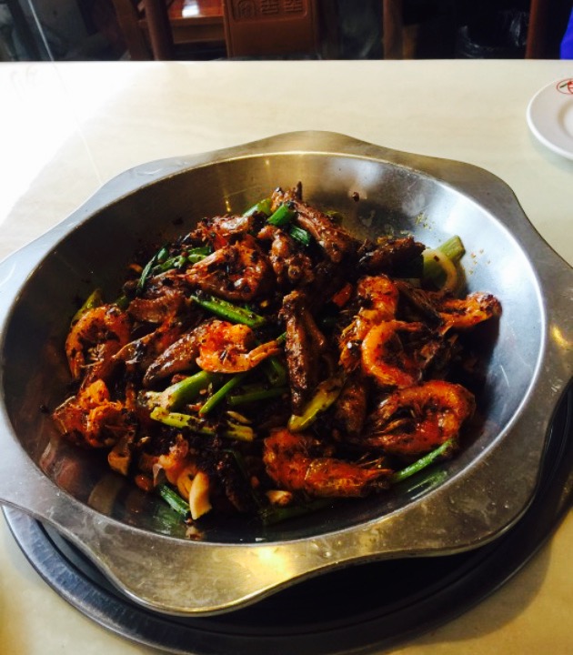 之前吃的时候是在路对面的老店,现在换了位置,大了不少,装修环境也不一样了,和朋友一共三个人,菜谱上只有中锅和大锅,必然是吃不完的。还好问了一句没有小锅吗。答案是有的,是老板故意不把小锅放在上面么。要了小锅,小锅送两个涮菜,点了豆芽和土豆片,份量都不错,这个时候的鸡肉真心是太老了,嚼不动不说还塞了满牙缝都是,太难受了,只是汤还是很赞的,泡着米饭真心很美味,由于带了孩子不能吃辣,单独点了一份蛋炒饭,份量也是很足,味道也不错,鸡煲总体来说没有之前的入味了。三个人点了小锅,两个涮菜,三碗白饭,一份蛋炒饭,三套餐具,一共108。吃的很饱呢,给去的朋友做个参考。之后给老板建议鸡肉炖烂一些就更好了,问了一下怎么没有团购呀。老板娘说是才取消掉了,原因是鸡煲价格本来就已经很低了,所以做成团购不划算,但是这个价位的确是比较实惠了。