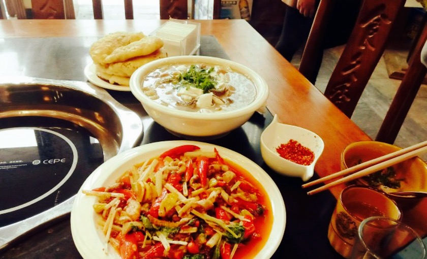 食久香跷脚牛肉是在乐山苏稽镇上,这是很出名的古镇
