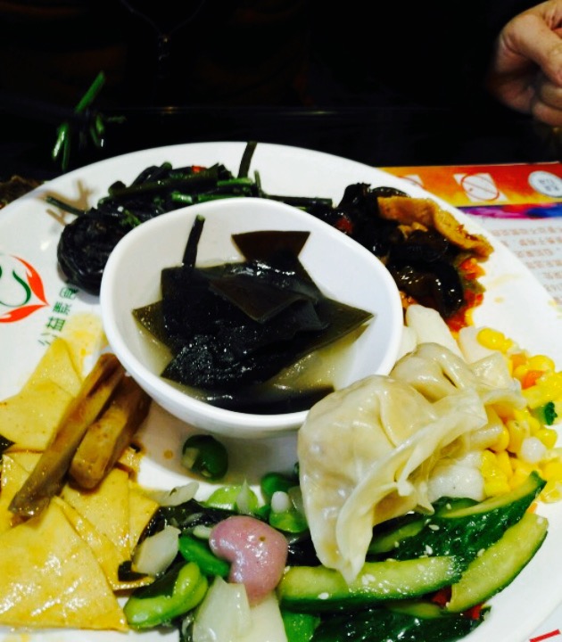 最喜欢杏鲍菇做成糖醋的那道菜,酸酸甜甜的,看上去也最像肉。薏仁粥相当好,没有薏仁的怪味儿,肯定超级减肥啊。哈哈哈哈。一开始,觉得绿色的汁好怪异,还以为是青汁,微商朋友圈比较火的东西,一问,黄瓜汁,呵呵,喝了,好清爽。也许,就是一次洗礼。餐桌也显示的是别处看不到的古训,是一次文化的洗礼吧。现在想来,确实是让身体净下来,让心静下来。