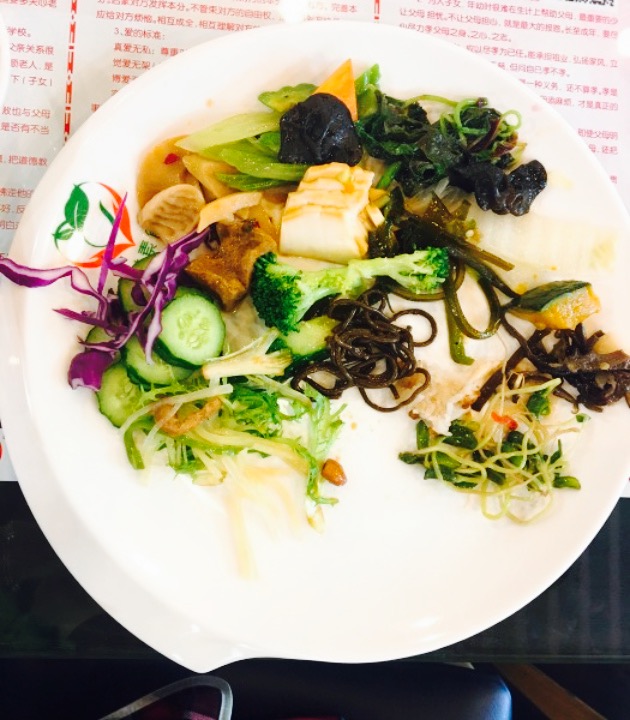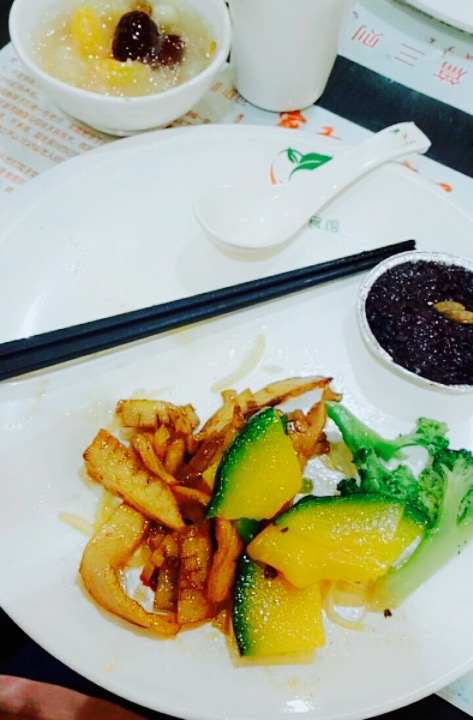 素菜也能做的如此爽口,并且价钱十分实惠。常吃素的对身体也好。菜的品种好多,豆沙包,菜包,蒸饺,点心,饮品,水果样样囊括,只是高峰期人比较多,需要拼桌。光盘的话还能送代金券呢,提倡人们不浪费,总之特别开心的素食馆,这是我要常来的一家店∩_∩。