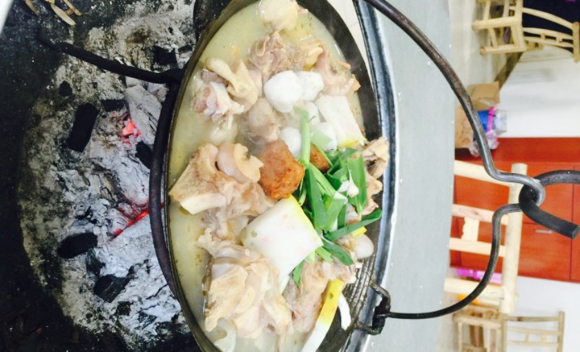 来三里畈泡温泉,住在晟达温泉酒店,这里离三里畈温泉开车大概7-8分钟,很便利。巴河人家就在晟达酒店的对面,我们点了个腊味吊锅,168元,确实很大一锅,内容丰富,各种腊味都有,里面还有鱼丸,鱼糕,竹笋等等,的确很实在,两个大人一个小孩连一半都没吃完。本人觉得5-6个大人吃都够。我们怕浪费,跟老板商量可以下,晚上继续吃,收了一点加工费,结果晚上还是没吃完啊。