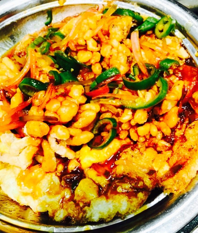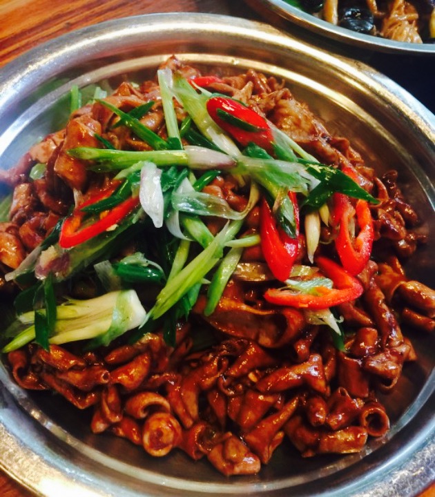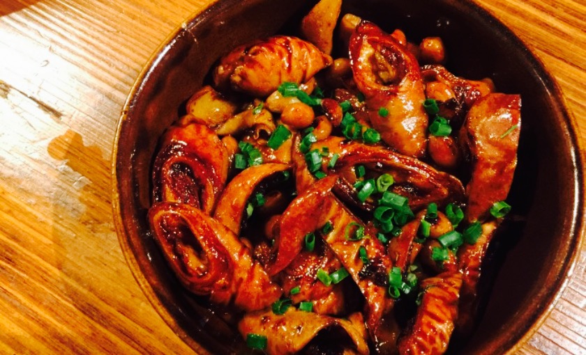 很可惜去得有些晚了好多招牌菜都没得点了,于是再有限的选择里吃了咖喱虾大肠和青菜。大肠处理得很干净好评