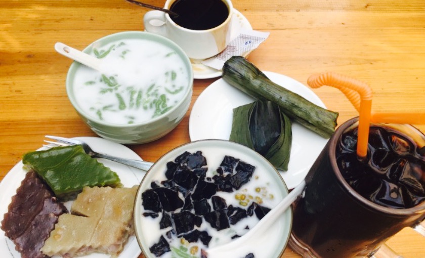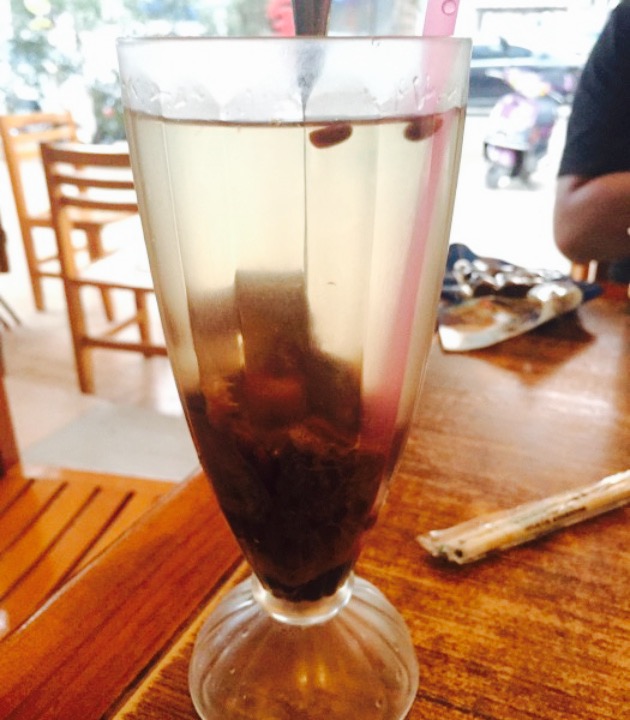 中午时分,店里很多旅客,电扇在头顶吱呀呀地转,都是阿姨们在招待客人。没有空调,外地来的人吃出一身热汗,本地人还逍遥自在。都是家常的味道,面汤里是方便面,捞河粉上配的大概是牛肉丝,红薯叶炒牛肉是妈妈和店员商量出来的,芋头叶18加牛肉12,大排档就是那么随性吧。店里有一种叫汉菜的青菜,以为是本地风味,端上来发现是我们的苋菜,回想起刚刚看到店员阿姨坐在大堂一角摘菜,现点现摘现做,也是搞笑。点心都是两块三块的,倒也公道。不管是红豆糕还是糯米糍都很黏,大夏天吃来未免不够清爽。