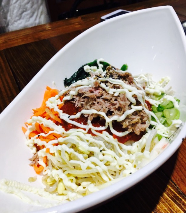 口味⭐️⭐️⭐️⭐️⭐️。哎我天。太美味了。原来想去吃过好几次。看评论都说不行就生生的错过好几次。今天饿了打算去品尝。去的时候店里没有别人。只有我一个顾客。服务生和厨师还有老板娘都在睡觉。挺不好意思的。做的非常快。不到五分钟就好了。服务态度也非常好。挺清淡的也挺香的。很爽口的金枪鱼拌饭。也只要了金枪鱼拌饭。店里有免费的海带汤和泡菜。味道都不错。环境⭐️⭐️⭐️⭐️⭐️。环境挺好的。挺卫生的。就在摩码一楼商服。挺显眼的。服务⭐️⭐️⭐️⭐️⭐️。服务赞。总体nice。打算办个卡。