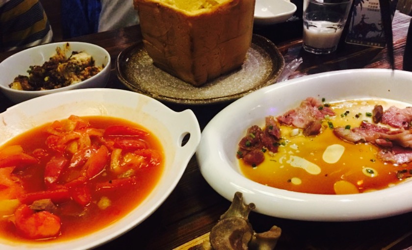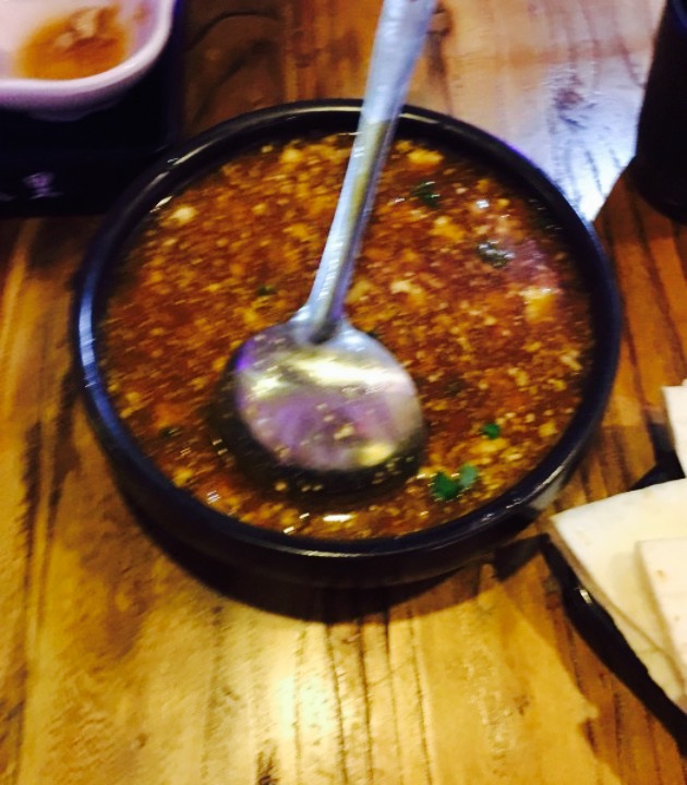 ...是一盆番茄蛋花汤,味道很赞,玉米汁虽然有些小贵,只是很好喝,人均在60左右,好像没什么优惠活动