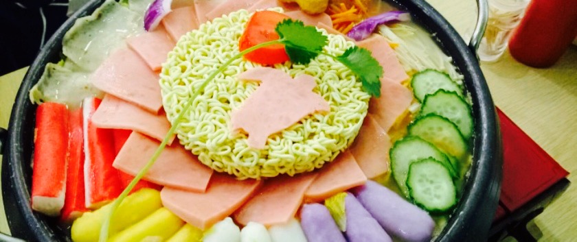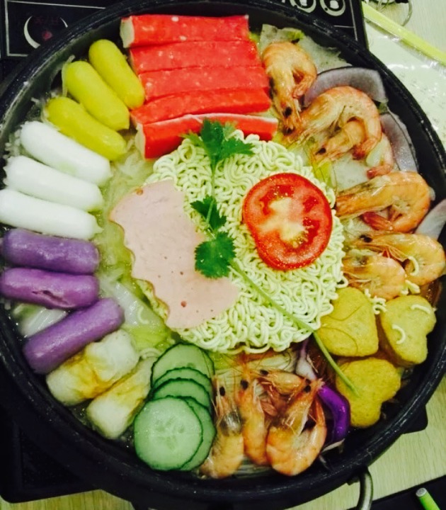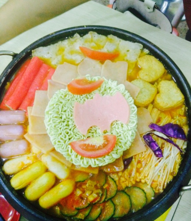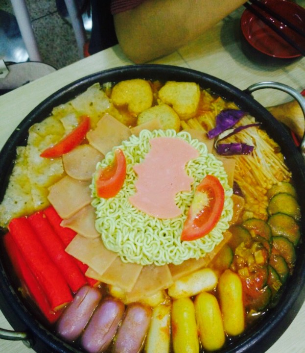 第一次吃年糕火锅,点的是部队年糕火锅,里面有蟹柳,火腿片,肉饼,红萝卜丝,白萝卜丝,鱼豆腐,大白菜,洋葱,金针菇,方便面,丝瓜片,然后年糕里面包裹着芝士,我不是很喜欢年糕,觉得白菜最美味,点的是微辣,只是我觉得微辣也是非常辣的,老板服务态度很好,棒棒哒,然后套餐里边还送了两杯水,一杯冰红茶,一杯茉莉绿茶,还送了一碟豆子,棒棒哒。