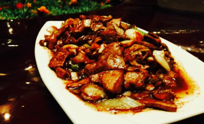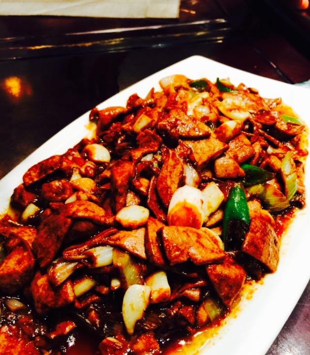 营业时间应该挺晚的。感觉正常吃味道应该是不错的。只是大家都等我们做高铁。因此吃的比较晚 。好多菜都凉了。这是大石桥比较有名气的酒店 。菜品量大 。摆盘也还不错。实在太晚了没办法吃太多油腻的食品。嘿嘿。推荐凉皮吧。还有干煸蝉蛹。茄子一般但是也可以吃。锅包肉实在放凉了。太多菜了 。没吃过来。