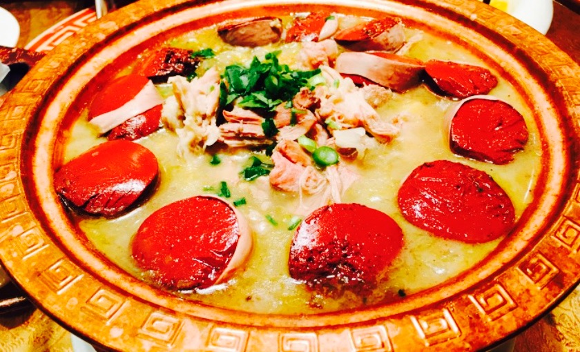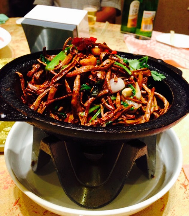之所以选择了家门口的这家,是因为姥姥过生日,以前小时候特别喜欢她们家的烤鸭,也不知道是因为长大了嘴刁了吃过的好东西多了,还是他们家的厨师真的不好了,感觉烤鸭明显不如以前了,尤其是切烤鸭的刀工,没有吧鸭肉和鸭皮切的整齐,所以找不到特别脆的鸭皮,不太喜欢这样。其它的菜品都不错,酸菜血肠很有东北的味道。要好好表扬一下这个拔丝芋头,甜度和黏度恰到好处,不会因为外皮太粘而吃不了太多。总之在大石桥算是很不错了,价位也很便宜。but。不晓得我们包间这个服务员是大姨妈了还是失恋,全程黑脸,打包的时候简直带着气打包,就差把菜倒我们身上了,虽然心情不好可以理解,可是我觉得服务行业还是要学会调整好自己的心情。