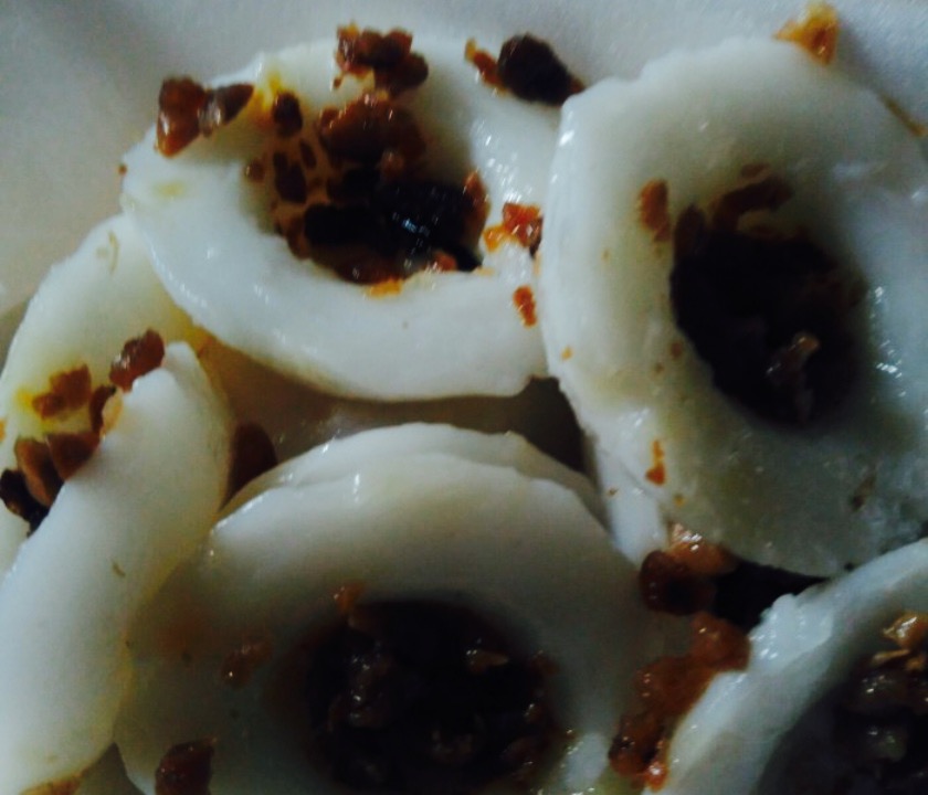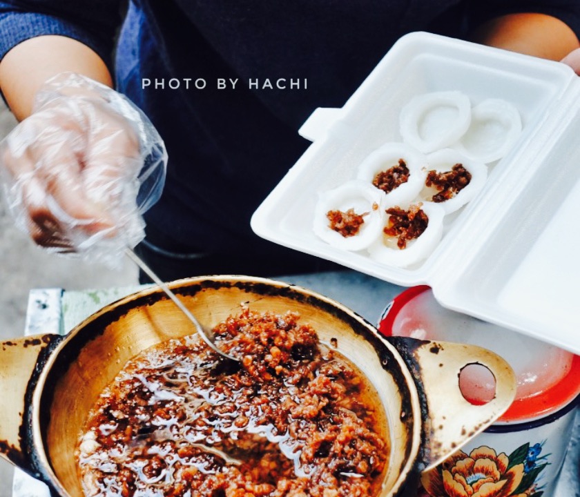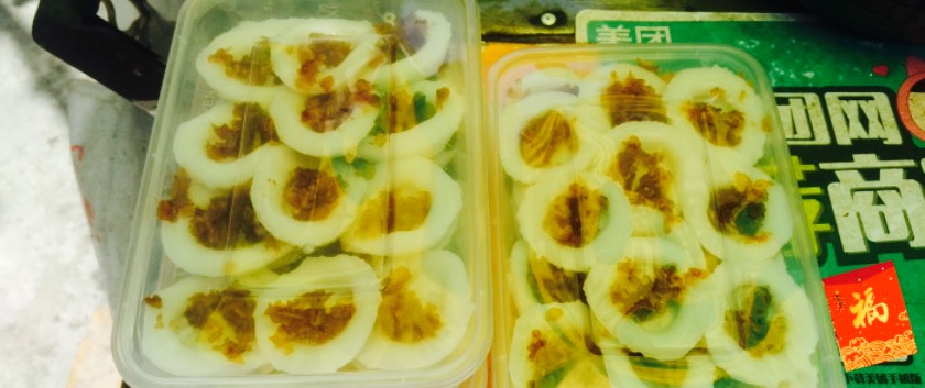 听说这个奶奶做的咸水粿特别美味,我们去玩的时候住在肯德基边上的如家,奶奶的摊位就在旁边。第一天去的时候奶奶还没在,第二天去人好多,等了很久才买到。第一次吃,上面加的是梅干菜,非常鲜美。可惜当时没有拍奶奶操作的照片,超级娴熟的。奶奶人也超好。