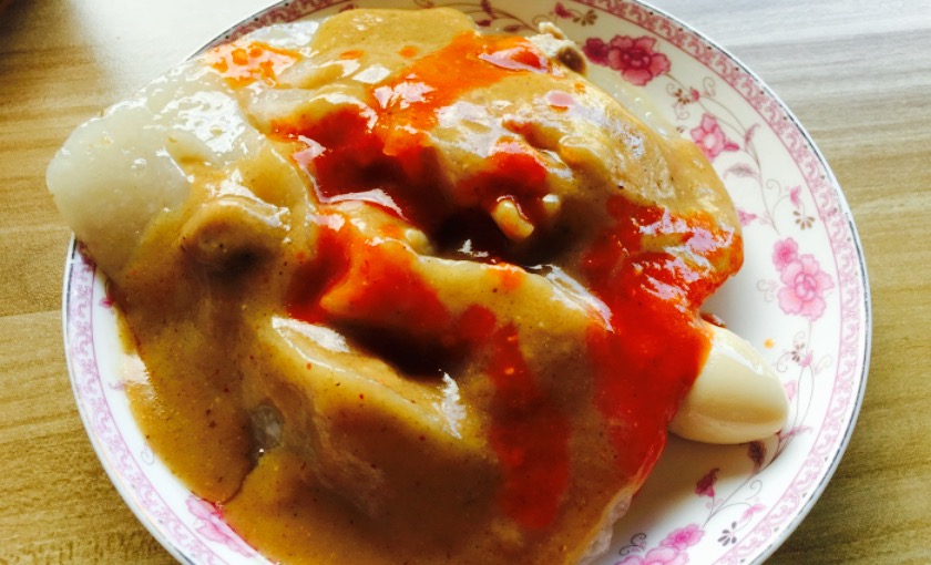 听朋友介绍这家人,总算来试一下。没想到生意很好,去到时已经好几个在排队。里面有4种价位的豪果,分别是6,8,10,20。就是下的料种类多少的差距。20元的有下海参鲍鱼。一般 。选择10元的就很丰富了。有猪肉碎,咸蛋黄,虾,鸟蛋,干贝。好像不止,记不大清。只是去的时候说10元的没了,只好点8元的,少了虾和鸟蛋。豪果煮熟后再放进油锅里炸一下。底下皮有些微微酥脆,又不会太硬。其他果“肉”部分很松软。因为有把上层剪开,淋上的酱料留进内里馅料,把原有馅料的香搭配得更是锦上添花。因此,最后我吃了两个。这里还有卖汤,一份五块。那天去的时候是莲藕汤,据说料挺多的。但因为天气热,所以叫了冷饮。