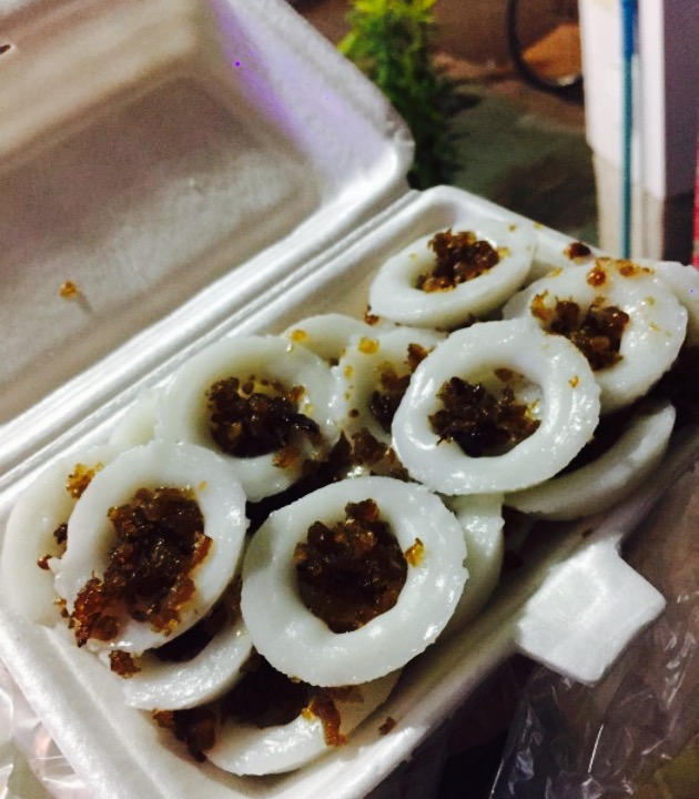 很想念那个味儿,有机会一定回来吃。如果要吃辣的,就会在每个咸水粿上面再淋一点点辣椒酱