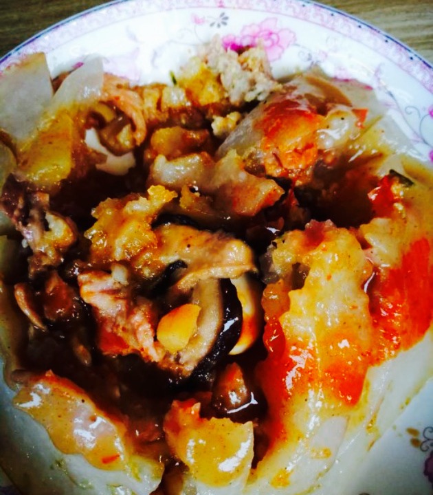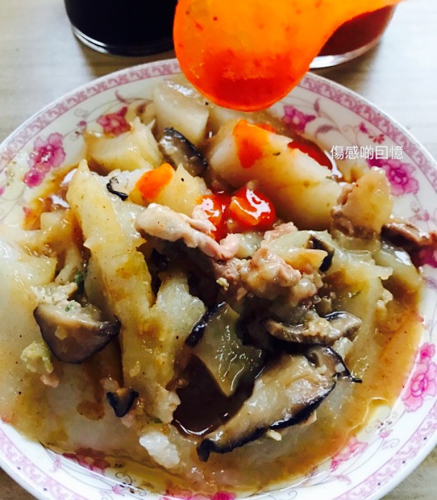 这家店生意一直很好,下午4点到,店面一片火爆。男店主在榨猪油。女店主忙着张罗。貌似十块钱的比较热销,油锅里的十元的先卖完了,老板娘从店中取出半成品放置于油锅中, 。从放入锅中到出品,目测需要十五分钟以上, 。然而大家都是愿意等。我就先要了个6元的解解馋, 。绵柔顺滑,十分可口。材料虽然是普普通通的香菇瘦肉,只是材料非常清新。这点很重要。香菇也够香,有些饮食店的香菇不香不臭的。灵魂还是那锅黄褐色的鱟酱,配合生抽,简直人间美食。粿本身非常嫩,容易进食。真正是“老人无齿也能食”。这不。我对面的大爷吃的津津有味呢。