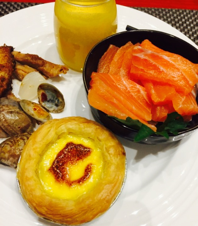 特别是牛排,煎的非常浓香。比万达嘉华的自助餐味道好多了,也新鲜多了。铁板烤鱿鱼也不错的