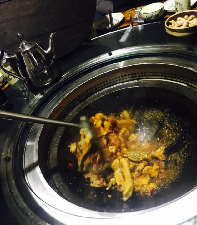 第一次来百年老灶柴火鸡这家,整体味道还是不错的,他家店就在一米阳光这边的五指峰路,琴丫头超市下面一点就能看出,离江西理工大学黄金校区特别近,我们7个人点了半只三斤多的鸡,还点了鱼肉,小炒肉等各种炒的,一开始吃鸡肉,还点了好多丸子,腐竹,茶树菇,香菇,生菜,蓬蒿,香菜,面条,猪血,山药,海带,洋芋,藕片等各种配菜,吃的太撑了,另外还加了酒水,也不算多,总体花下来过了550,但是真的是点的有些多,3但这家菜也不便宜,希望店家能多推出点比较实惠的套餐,这家算是真正的柴火鸡,大灶台用柴火闷的鸡肉,鸡肉炒的时候放了很多料呢,有小米椒,姜蒜,胡椒粉,还有种酱,鸡肉用菜籽油炒的,确实很不错。今天去时扫一扫发朋友圈还送一瓶王老吉呢,不错的吧。