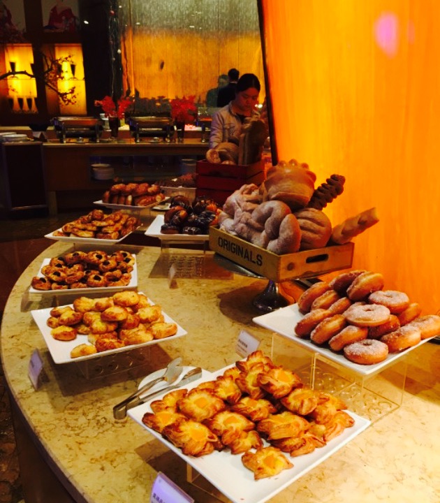东港喜来登酒店的榕华庄自助,印象当中很久之前来喜来登吃过一次自助,好像时间有点久也忘了当时吃的咋样了。这次是跟朋友一起,提前一天预定,东港喜来登酒店在江东的七塔寺这边,有个大概位置,还是很好找的,到了酒店就能在一层看到自助餐的位置,门口有工作人员,核对名字电话就会有人带你去预定的位置坐,晚饭的时间是5点半开始,我们提早到了,还没开餐,因此就先大概的扫了一圈看看有啥吃的。比较关注的当然是日料区,也幸好我们坐的离日料区比较近,拿拿也是合适,因为下午吃了下午茶,说真的肚子是满的状态,所以当天我就只打算吃点日料和龙虾了。三文鱼之类都是有人在那里切,排队点自己想要的。小龙虾隐藏的是真的深,看小伙伴拿回来小龙虾,兴冲冲的去找,来回在那两圈我都没看到小龙虾,不过又说了在麻辣烫附近,心里还想不至于这么快就没了吧,问了一下麻辣烫的阿姨,原来就在麻辣烫旁边两个大大汤锅里面,一直以为那是两锅汤,字牌都没看,后来认真一看还真是写的小龙虾,一捞里面也都是龙虾,马上捞了满满两盘走。还有就是最里边的牛排了,也是去了好几次,一开始是还没开始,第二次去是在煎别的,第三次去才碰到煎牛排,果断排在那边等。味道还可以吧。鹅肝,看着也很不错,只是只吃了一块,油是有点油。陪着那里细长的生菜吃稍微好一点。其它的甜品看着也很不错,而且种类好多,奈何当天吃了下午茶,胃都不够装其他吃的了,所以当天一些热菜,甜点都没尝试,就是在最后去挖了一个哈根达斯冰激凌。再说一下服务,收盘速度很快,基本也不会有留盘情况,菜品除了小龙虾最后有点断了,其他好像都没有。最后吃的饱饱的离开了。