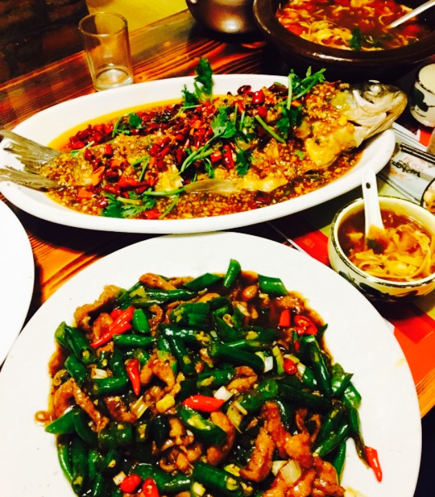 蒜爆鱼??特色菜,好吃绝对。【位置】在中医院过了桥再往西300米左右,挺远的,在马路右边,只是味道很不错哦,再远也感觉值得。她们家还有外卖的哟,嫌远的亲可以点外卖哦。【服务】店家服务很和气,还爱开玩笑,说她们家的蒜爆鱼赫赫有名,嘿嘿,这是多骄傲啊。【口味】点了藕条,地三鲜,特色菜,蒜爆鱼,蒜苗炒肉末。蒜爆鱼不愧是特色菜,香辣好吃,辣是蒜末的辣,不是辣椒的辣,非常美味的。还有一匹“黑马”,地三鲜,茄子外酥里嫩,超美味啊,目前我吃过的最美味的地三鲜,好评。