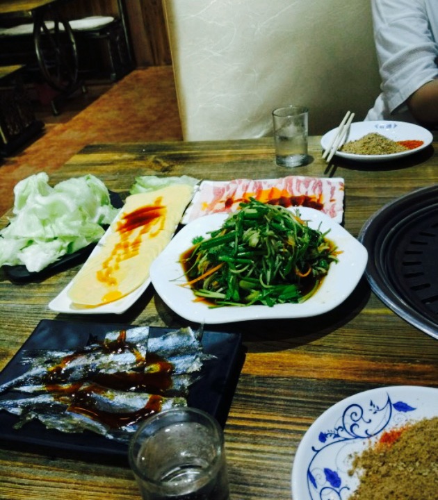 清理照片的时候发现一直没写。今天就把它写了。和同事一起来的,我们四个人因为除了我都是男生所以我们团的六人餐。除了主食全部吃光了基本。因为主食实在太多了又是疙瘩汤又是炒饭。下面说菜。1,拉皮和拌黄瓜,很入味。他家的辣椒油有点辣味但是非常香。尤其是那个拌黄瓜超美味。2,手撕猪心头,这个推荐。肉质一点都不老,非常嫩,咸淡也刚刚好,吃起来入味而且没有任何猪腥味。3,羊肉的话说实话一般,味道有些怪。4,牛肉,这个美味。腌得很鲜美,吃起来很嫩,陪着洋葱很棒。5,棒棒鱼,棒棒鱼我觉得全世界都入味,没有难吃的他家也是。6,小烤肠,就是烤肠的味道,中规中矩。7,蔬菜拼,洋芋和地瓜上浇了一层酱汁,很鲜美,烤的软软糯糯的很不错。总的来说还是很不错的,价格可议,就是套餐里主食太多。有些浪费。