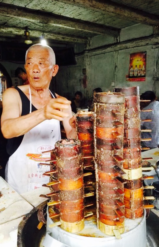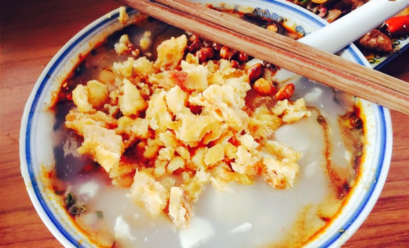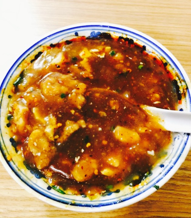 朋友带着来的,说是村里超级爽口的豆腐脑,的确很偏僻,不是熟人带肯定找不到,偏僻村里小巷子里,生意超火爆,点菜要用抢的。东西自己拿,服务员顾不上。点了豆腐脑,蒸肥肠,炒脆肠,脆肠爆香,很脆,里边的小芹菜很鲜美。豆腐脑料足,美味。苍蝇馆的绝佳口味。