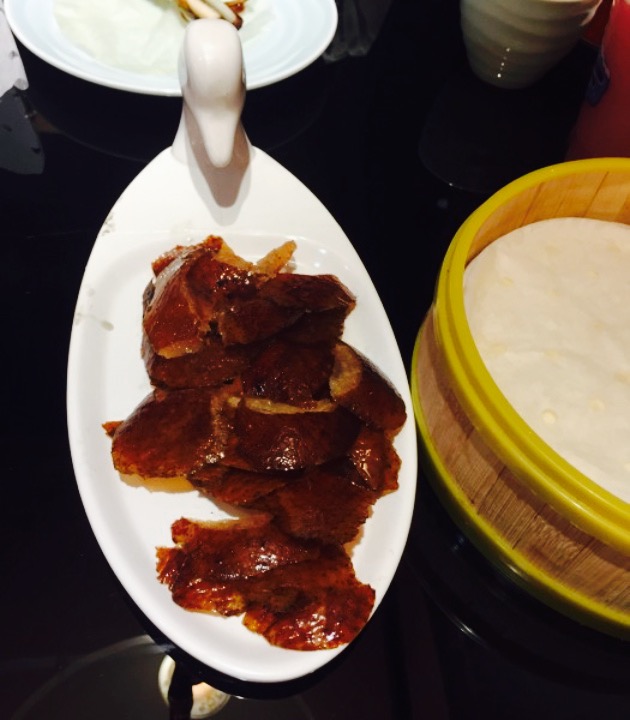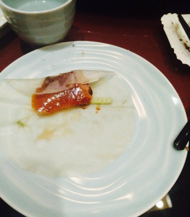 对于一个长期生活在帝都的人来说,这家店就算比较中规中矩了,没有惊喜亦没有太多失望。装潢风格略复古,包间都以北京的地名命名。服务也比较及时友善。烤鸭的味道一般般,尤其酱的味道不出挑,带不起烤鸭整体的味道。荷叶饼超级薄,是我吃过的最薄的荷叶饼。爆肚特别嫩,但总感觉哪里缺点什么。有一道豆芽,肉丝木耳炒在一起的菜,应该叫炒合菜吧,很有味儿。去之前团了一个双人烤鸭套餐 。很合算,但是套餐里有一道干锅土豆片,一直都没上,我们都忘记了,基本快吃完准备结账了,服务员过来告诉我们还有一道菜没上 。我们说都吃完了,你们也不早点提醒一下,服务员说,之所以也没什么解决办法,是因为是团购的,这点非常不满意,不能因为团购就降低标准吧,希望商家就这个问题有所改进。