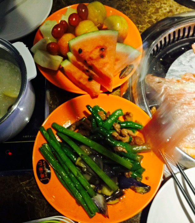 1,位置。中山北路万亚广场7楼。2,停车。万亚广场有地下停车场。3,环境。环境还可以,地面略滑,地方挺大的。4,服务。服务一般,服务员安排我们坐在比较角落的位置,有点忽略我们,不会经常过来,吃火锅想加汤比较麻烦。5,口味。味道也一般般吧,跟其他自助烤肉没什么差别,生鱼片也有,不过不是很清新,有刺的生鱼片也是第一次吃到,片的很糟糕,这个希望可以改善,其它的还可以吧,菜的类别还比较多。6,价钱。价钱有团购,价格适中下次还会来,中午原价69,晚餐79,团购都是59。