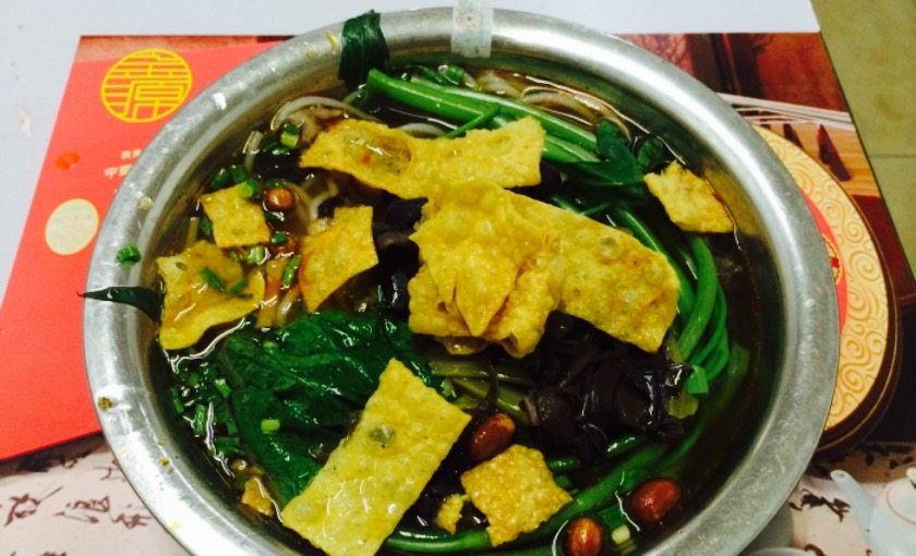 配料中,炸花生非常香脆好吃,木耳口味刚刚好,豆腐泡也很合适很美味