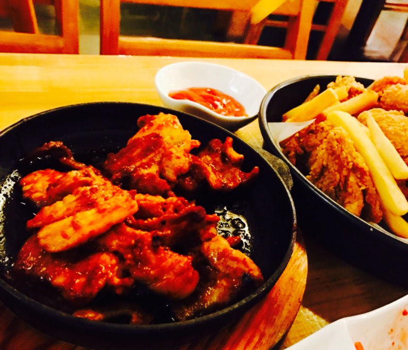 跟朋友骑着小黄车乱逛的时候发现的这家店,正好两个人都饿了所以就停下来休息顺带吃饭。【口味】点了部队锅,炸鸡和薯条,个人感觉部队锅不入味??炸鸡好像是分原味和调味的,感觉原味的没有调味的可口,也许本人更喜欢味道主要的食品吧,薯条真的美味,味道棒。给好评。【环境】店里不算太大,也不是特别拥挤那种,装饰什么的也蛮清新,吃的时候看到不少人在等位,貌似蛮火的。【服务】服务态度挺好的,上菜也挺快。总之个人感觉除了部队锅之外其他都挺好吃的,会带朋友再来。