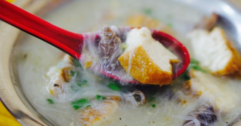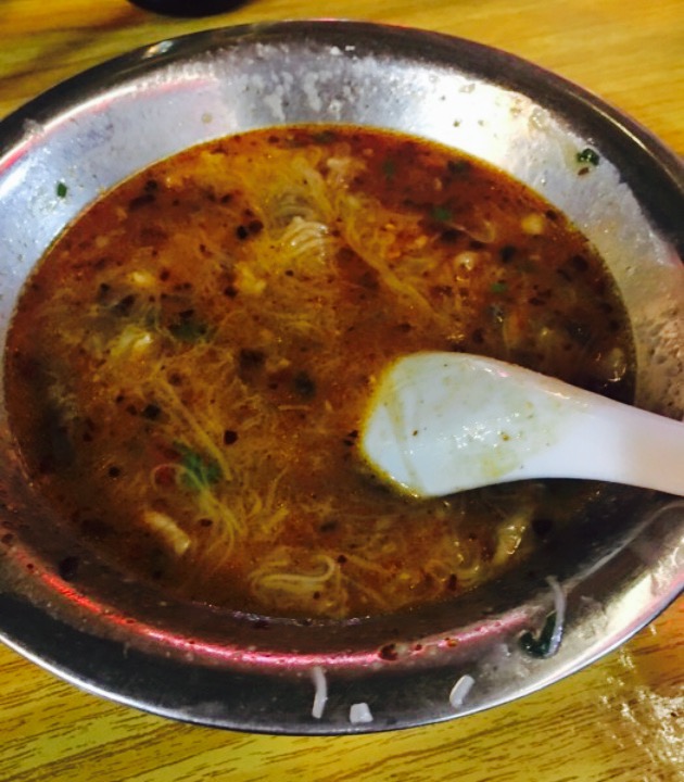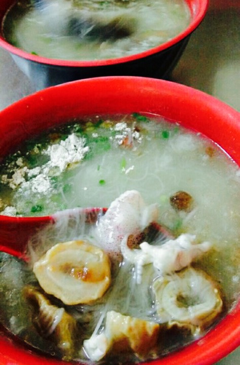 闽南小吃——面线糊#面线糊(mī-suà。nn-kô。o)是福建泉州的汉族传统名点,呈糊状,是由细面线,番薯粉制作成。先将水煮开,放入番薯粉和调料,面线。一般为早餐食用,也可以当做点心和夜宵,就着油条跟马蹄酥吃。味道鲜美,清甜爽滑,具有闽南地方风味。(PS,吃面线糊必须加醋肉因为醋肉与它更配[酷])大怣小怣是兄弟,怣读做有you,普通话跟憨是近义词,我感觉应该是很老实很天真的傻瓜的意思,大怣的门面比较大,两家可以加的配料都好多,还有大虾,价钱也比较贵,小怣也在不远处,现在吃一顿大怣小怣面线糊加最平常普通的配料都要20块了。真心感觉贵。
