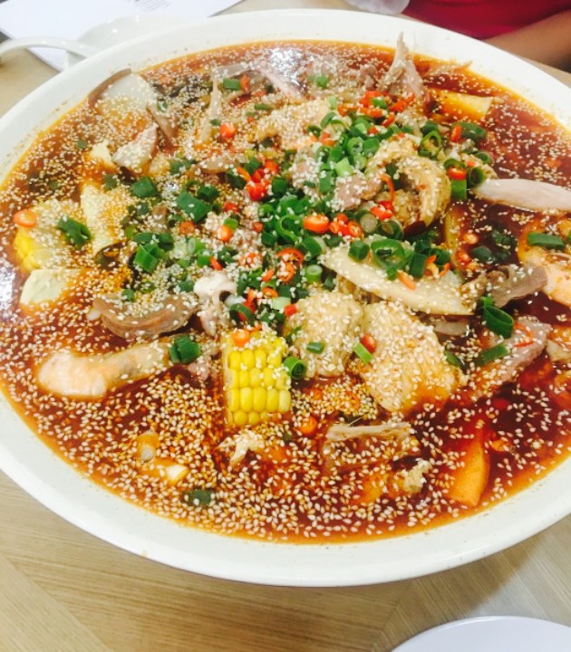 超级推荐呀,地点很好找,就在罗马假日&。九中交通岗口,一眼就能见到。老板娘特别热情,味道也是棒棒嗒。我们要的微辣的,掌握得特别好,菜品种也非常全,虾很大,鸡肉,鱼丸,鸭肠,牛肉,肚儿,鱼,超丰富,菜也很清新。看看照片就知道种类超多呀。看看我们吃的也太卫生了,说明味道那是相当不错滴??那个花卷很有特色,像枣糕似的,浓厚的大枣味道,赞。每个桌子上还有个能开关能充电的插座和USB接口(忘了拍照??)真是太贴心了。环境也挺不错的,爱吃川菜的伙伴一定要来试一试 。改天再去一定要点超辣的尝尝✌️。