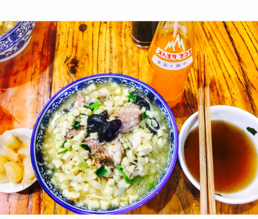 里边的生意是十分的好,将近2点去的外间都坐满了,有牛羊肉泡馍,做菜,水盆,夏天还有卤汁凉粉和麻酱凉皮