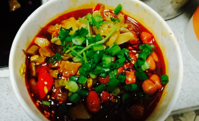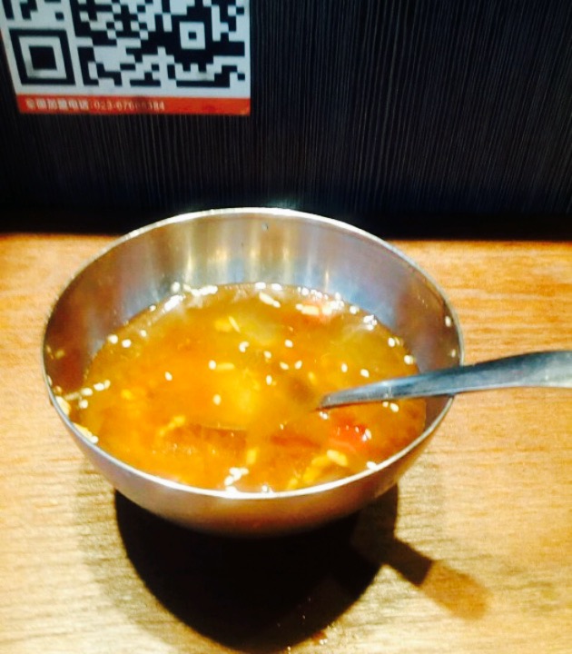 【坐标】。观音桥星天广场平楼层,茶桔梗右边的过道里面,招牌很显眼。【环境】。典型的快餐式装修,主色调好像是黑色和黄色,没有单独的桌椅,是围绕着料理台的吧台式圆桌。去的时候恰好是最热的那几天,店内通风不是很好。主要卖酸辣粉抄手和炒饭,冰粉也是特色之一。【服务】。都是些年轻小哥和妹儿。点单的时候说不过团购的一份冰粉也热情地招待我。尊重每一位消费者。对了,我记得小哥们的颜值还挺高哒。哈哈哈。【口味】。冰粉真的很大一碗。里面有西瓜丁花生碎芝麻醪糟等等。用料太足了。冰冰凉凉的,很消暑解热。