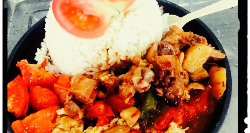 一食堂里有很多类型的菜可供选择 。本人比较喜欢吃铁板饭 。鸭血粉丝汤 。还有如意馄饨 。首先说说铁板饭 。简单点说就是把做好的菜浇到饭上面热一热 。还是很简单粗暴的 。可是里面的土豆烧鸡很不错 。里头还有香菇 。烧的很入味 。还有鸭血粉丝汤 。看起来做的也很简单 。把粉丝烫一烫就放碗里加料盛上了 。只是觉得老板汤汁熬的很用心 。因此觉得很赞 。还有如意馄饨 。最喜欢玉米馄饨 。不过觉得价钱偏贵 。每年涨一块钱一年一年的 。涨了好几块了。