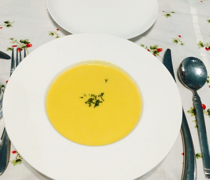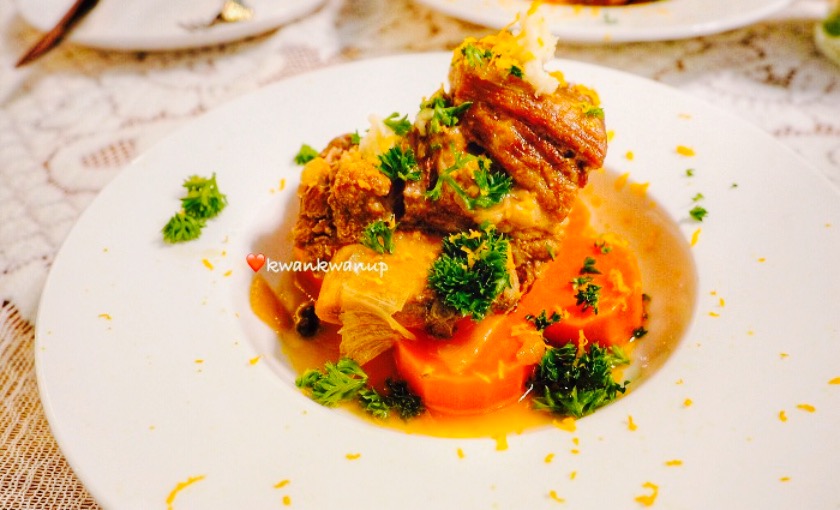 在旧启明小学附近 。要是开车的话 。可能位置不算太好找。我是提前两天预定菜单的 。整体来说味道不错喔 。我们四个人吃得好饱 。最后还要打包呢。服务态度很好,每道菜都会讲一下它的特别之处,口味,佐料。然后上菜的速度是根据进餐的速度进行调整 。浓奶油南瓜汤 。本人口味问题 。觉得淡了一点点的 。不过真材实料。带子沙拉 。沙拉本身是没有味道的 。可以依据自己的需要加调味喔。西班牙烤鸡 。鸡肉还是比较鲜嫩的 。也很入味 。小西红柿味道很不错喔。