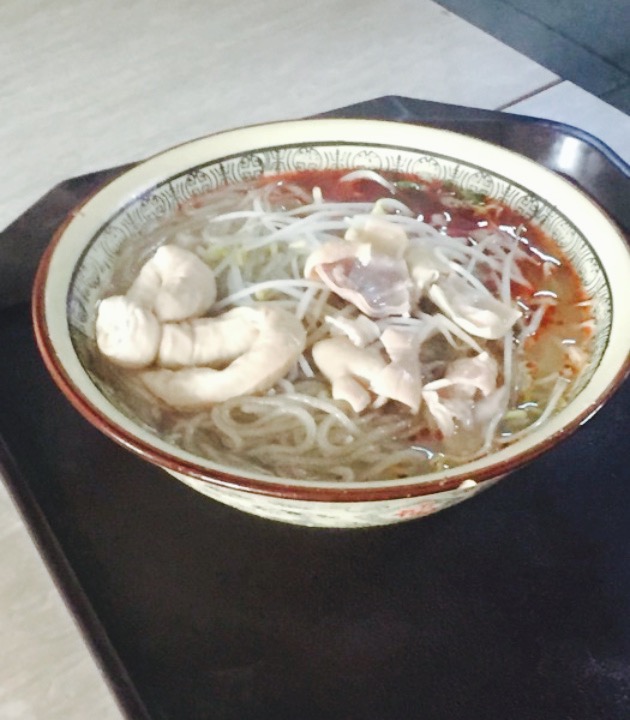 找一家没吃过的食堂用餐,就选了这家,看名字大有来头样,写的十年老店经典美味,上面还有一块很大的招牌扁,气士很足啊。一进店一小哥坐在门口收钱,选好了先给钱,再上菜,这小哥也只收钱,其他什么都不做,比如客人的筷子掉了在他跟前,好像也不关他什么事,客人自己到出单口又取了一双,果真是老店,这倒是有点老店的风俗,让我想起了小谭豆花,也是这个样子的,不过别人给的是饭票,他家给的是收银小票。说说吃的吧,一个人点了三两他们最传统的肥肠粉,12块,肥肠没什么说的,白白的,看起来没什么食欲,吃起来倒是没什么异味,粉条也是民俗的粉条,但是里面的胶质还好,因为吃了没有反胃。主要说说汤了,味道很鲜,应该是餐厅现吊的汤,且火候不少于4个小时,很浓,很白。环境就很普通了,街边小店,里边还挂了刘德一的相片和提词。服务就像收钱那们小哥,事不关已的样子啦。